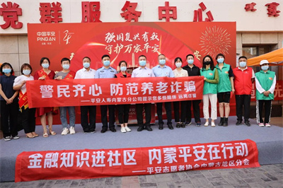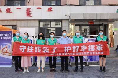強(qiáng)國(guó)復(fù)興有我,守護(hù)萬(wàn)家平安。6月15日為全國(guó)防范非法集資集中宣傳日。平安人壽內(nèi)蒙分公司黨委聯(lián)合呼和浩特市政法委、新城區(qū)西街派出所、曙光街社區(qū)新時(shí)代文明實(shí)踐站、星火巷社區(qū)新時(shí)代文明實(shí)踐站,深入社區(qū)組織開(kāi)展“強(qiáng)國(guó)復(fù)興有我 守護(hù)萬(wàn)家平安”防非反詐、安全生產(chǎn)、金融知識(shí)進(jìn)社區(qū)活動(dòng)主題活動(dòng)。助力提高社區(qū)群眾識(shí)別、抵制非法集資能力,引導(dǎo)群眾自覺(jué)遠(yuǎn)離非法集資陷阱,增強(qiáng)群眾的法律意識(shí)和法制觀念,護(hù)航人民美好幸福生活。