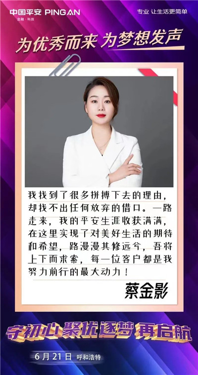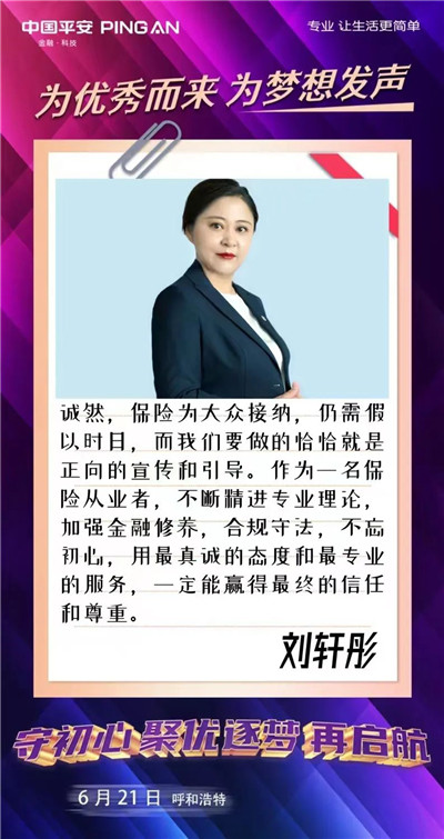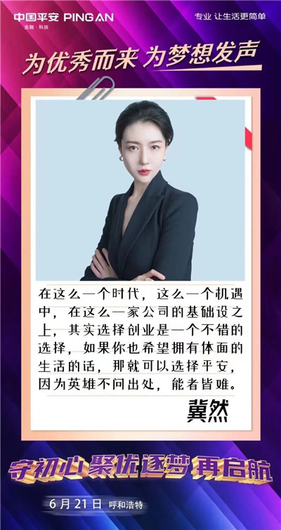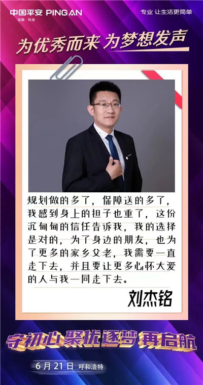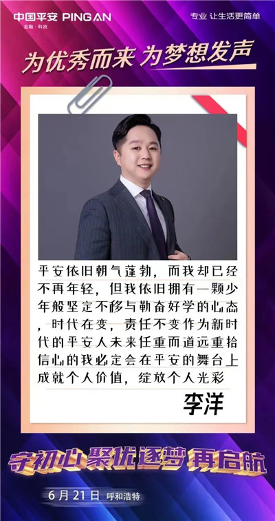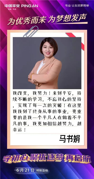 歡迎更多的你、我、他(她)來到平安的大舞臺(tái),為夢想發(fā)聲,為優(yōu)秀而來,盡情綻放自己。