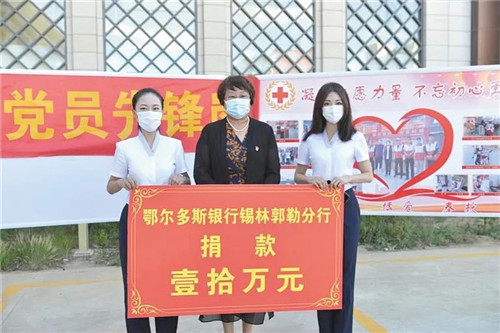 鄂爾多斯銀行錫林郭勒分行向紅十字會捐款10萬元支援疫情防控工作。