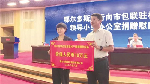 鄂爾多斯銀行黨委向市包聯(lián)駐村辦包聯(lián)駐村干部捐贈價值10萬元“金融助力包聯(lián)駐村”工作慰問品。