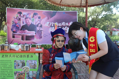 作品《茶湯飄香幸福來(lái)》是年近九旬的蒙古族老人在茶湯攤講述她遠(yuǎn)離非法集資、守住錢袋子的故事,“我這么大歲數(shù),要不是建行小姑娘的幫助,就被騙子給騙了,哪有如今的幸福小日子”,大家一邊品嘗著傳承百年的非遺美食茶湯,在米香悠悠中品味生活的甜蜜,一邊聆聽著老人遠(yuǎn)離詐騙的故事,跟著建行工作人員學(xué)起了防詐識(shí)詐技巧,在秋陽(yáng)暖暖中沐浴知識(shí)的甘露。