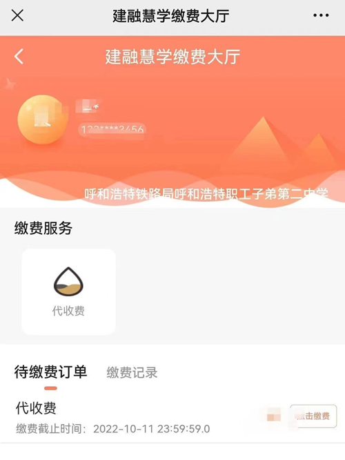 建行現(xiàn)已成功為呼和浩特市鐵路第二中學(xué)開通我行“建融慧學(xué)”繳費(fèi)大廳,并在7月中旬為小升初的222名學(xué)生提供線上收繳新生報(bào)名費(fèi)服務(wù)。