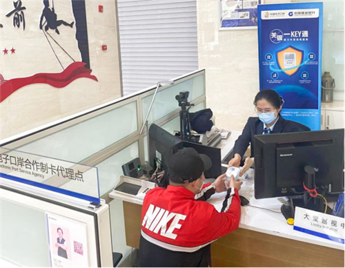 ▲建行呼和浩特分行基層網(wǎng)點(diǎn)開(kāi)設(shè)“關(guān)銀一KEY通”綠色窗口,實(shí)現(xiàn)企業(yè)注冊(cè)、電子口岸辦卡一站式服務(wù),推動(dòng)關(guān)銀企深度合作