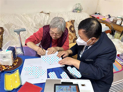 “崔叔來啦,有什么需要幫助您的?!薄翱烀θグ?,我是來取工資的?!贝蘩舷壬且晃?6歲的退休老人,幾天前,老人來到通遼明仁支行,向大堂經(jīng)理求助因自己操作不當(dāng),將老伴工資卡密碼輸入錯誤次數(shù)過多,導(dǎo)致無法正常取款。老伴已是85歲高齡,且腿腳不便無法下樓辦理密碼重置業(yè)務(wù)。了解情況后,支行主動上門為老人辦理業(yè)務(wù),但因老人工資卡是老版磁條卡,無法在移動終端辦理。經(jīng)過溝通,明確是老人真實意愿后,支行工作人員指導(dǎo)老人簽署了相關(guān)授權(quán)委托書,由其兒子到網(wǎng)點代為辦理了密碼重置業(yè)務(wù)?!罢媸翘兄x你們了,向你們致敬!”崔老先生高興的說。