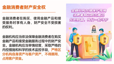 金融機構(gòu)應(yīng)當依法維護金融消費者在購買金融產(chǎn)品和接受金融服務(wù)過程中的財產(chǎn)安全。金融機構(gòu)應(yīng)當審慎經(jīng)營,建立嚴格的內(nèi)控措施和科學(xué)的技術(shù)監(jiān)控手段,嚴格區(qū)分機構(gòu)自身資產(chǎn)與客戶資產(chǎn),不得挪用、占用客戶資金。