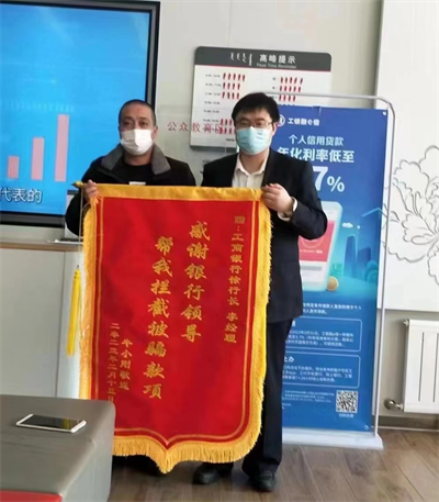 近期,一名客戶來到工行包頭稀土高新技術(shù)產(chǎn)業(yè)開發(fā)區(qū)支行營業(yè)室向大堂經(jīng)理救助,自述被人從網(wǎng)上騙走了1萬多塊錢,大堂經(jīng)理詢問客戶是否報(bào)警,客戶表示已報(bào)警,但手機(jī)還不停的收到電信詐騙人員發(fā)來的驗(yàn)證碼,大堂經(jīng)理穩(wěn)住客戶情緒,告知客戶先不要回復(fù)對方,并引導(dǎo)客戶到智能機(jī)查詢其賬戶情況,通過查詢系統(tǒng)顯示客戶剛剛注冊了一個(gè)工銀e錢包,該行大堂經(jīng)理馬上呼叫網(wǎng)點(diǎn)負(fù)責(zé)人協(xié)助處理,網(wǎng)點(diǎn)負(fù)責(zé)人見狀立刻采取措施,對該賬戶進(jìn)行掛失處理,同時(shí)查詢到該e錢包綁定的是客戶的一個(gè)農(nóng)行賬戶,隨即幫助客戶進(jìn)行了解綁處理。后續(xù)該行查詢客戶賬戶信息顯示虛擬賬戶內(nèi)資金還在卡中,并未被轉(zhuǎn)走,客戶激動的喜極而泣,并深深的表達(dá)了對該行工作人員的感謝。次日,客戶制作了一面錦旗送到工行包頭稀土開發(fā)區(qū)支行,再次對工行為其攔截了被騙資金表示感謝。