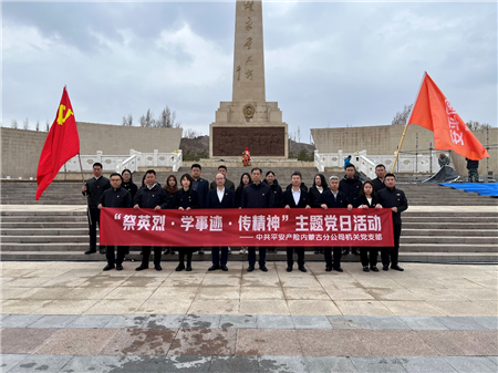 為進(jìn)一步繼承先烈遺志、傳承紅色基因、弘揚(yáng)優(yōu)良傳統(tǒng)。4月4日,平安產(chǎn)險(xiǎn)內(nèi)蒙古分公司機(jī)關(guān)黨支部開展“祭英烈 學(xué)事跡 傳精神”主題黨日活動(dòng),全體黨員懷著崇敬的心情赴大青山紅色文化公園進(jìn)行清明節(jié)祭掃,深切緬懷革命烈士的豐功偉績(jī)。