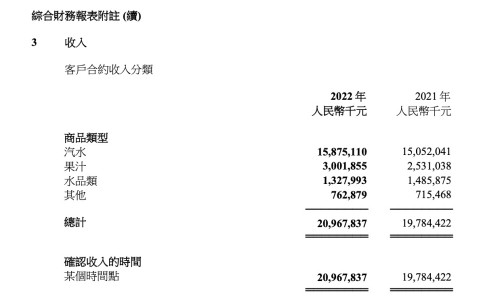 日前,中國食品發(fā)布的2022年業(yè)績報告顯示,公司營收首次沖破200億大關,較上年同期增長6%至209.7億。有數(shù)據(jù)顯示,其增速明顯高于飲料行業(yè)2022年零售額5.3%的全年增速[ 數(shù)據(jù)來源:國家統(tǒng)計局http://www.stats.gov.cn/sj/zxfb/202302/t20230228_1919011.html]。同時,凈利潤同比增幅12.6%至12.1億,這也是該公司連續(xù)多年保持連續(xù)“雙增長”態(tài)勢。