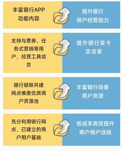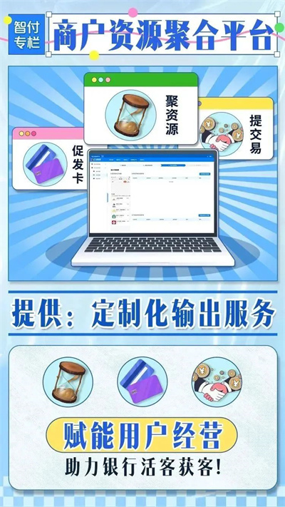上一期智付專欄為大家介紹了商戶資源聚合平臺(tái)的基本功能及其賦能服務(wù)商、提升分公司能力的作用。下面讓我們聚焦銀行業(yè),一起來看看,銀聯(lián)又是如何借助平臺(tái)之力,賦能用戶經(jīng)營,促進(jìn)銀行業(yè)務(wù)發(fā)展的呢?