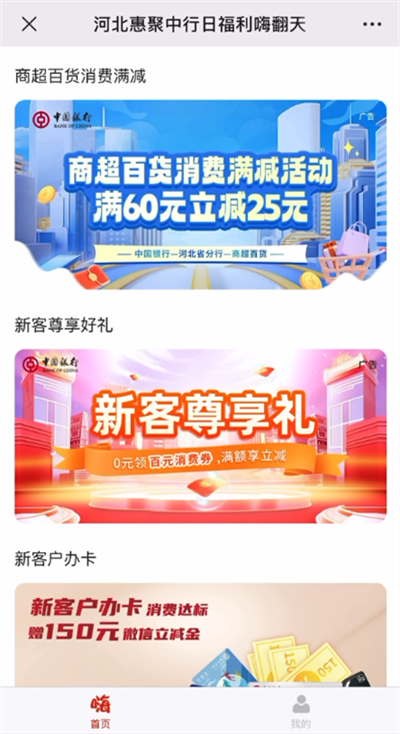 河北分公司聯(lián)動(dòng)河北中行實(shí)現(xiàn)“聯(lián)歡惠”API接口方式的輸出。借助該模式,銀行側(cè)結(jié)合“惠聚中行日”可以實(shí)現(xiàn)較為靈活的配置和展示,目前第一期已經(jīng)實(shí)現(xiàn)河北中行微銀行(河北中行公眾號)發(fā)放新客票券禮,分公司和分行共同出資開展經(jīng)營。