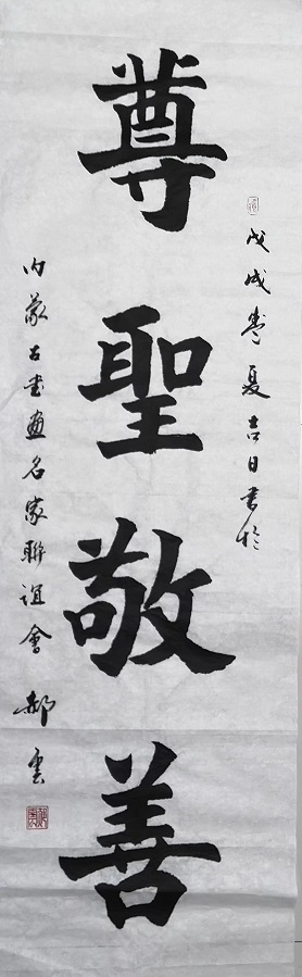 觀郝云書法,筆力雄健、大氣磅礴、點(diǎn)畫精致。他的筆劃比較注重線條的質(zhì)量、墨色變化,轉(zhuǎn)也流暢,折也剛健。飛白流動處,精神綻露;黑墨澆注間,氣骨凝結(jié)。筆墨雍容,安靜簡穆,形式內(nèi)容相得益彰,同時融入自己的性情營造出氣勢磅礴、不拘泥于小節(jié)、大氣縱橫的感覺,洵精品也,墨寶越來越被海內(nèi)外有識之士珍視,并被博物館、寺廟、茶館、書法愛好者和企業(yè)家收藏。