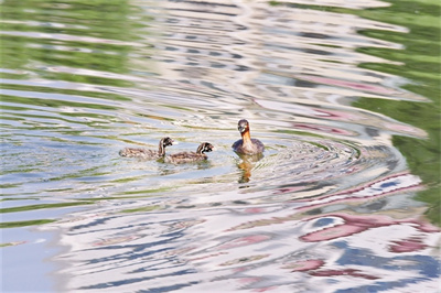 夏日的傍晚,桃河展現(xiàn)出一天中最迷人的姿態(tài)。河水在落日的映襯下泛起粼粼波光,宛如一塊鋪展開的巨大綢緞。黑鸛、紅嘴藍(lán)鵲在河面“翩翩起舞”,給“畫布”增添了別樣的色彩?!斑青辍?,攝影愛好者何瓊按下快門,記錄下人與自然和諧共生的美景。