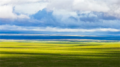 陽光透過云層,金色的光灑向賀蘭山下的草地,光影之間,是遠(yuǎn)方和詩。(攝影:達(dá)布西拉圖)