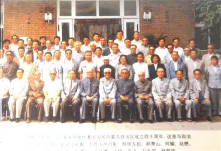 合照是烏蘭夫來內(nèi)蒙留下的最后一張照片。合影者有張暑光、布赫、劉云山及87年內(nèi)蒙古黨委第三次黨代表大會全體代表,顧委廷茂等,主要盟市委書記、大企業(yè)領(lǐng)導(dǎo),黨委綜合組秘書!作者當(dāng)年才三十多歲,在最后排中間!